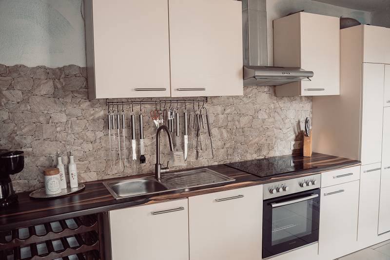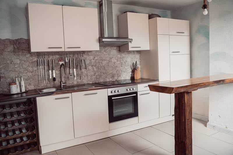 Ăber die Terrasse erreicht ihr die zweite KĂŒche â das frĂŒhere Backhaus. Voll ausgestattet und mit besonderem Charme lĂ€dt sie zum gemeinsamen Kochen und GenieĂen ein.